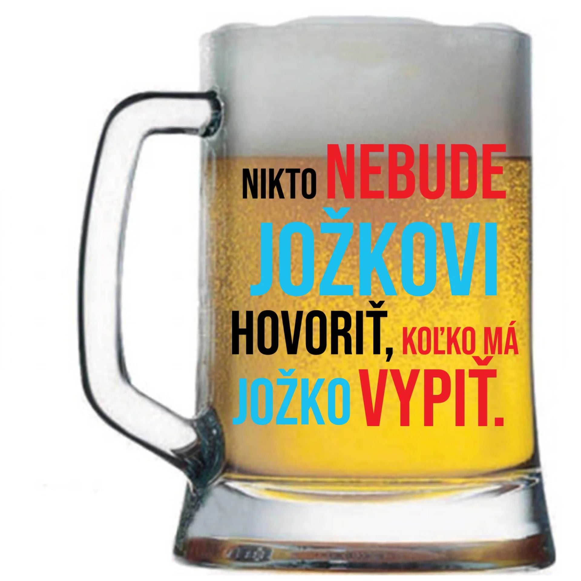 Pivový krígel s potlačou Nikto nebude *meno* hovoriť, koľko má *meno* vypiť